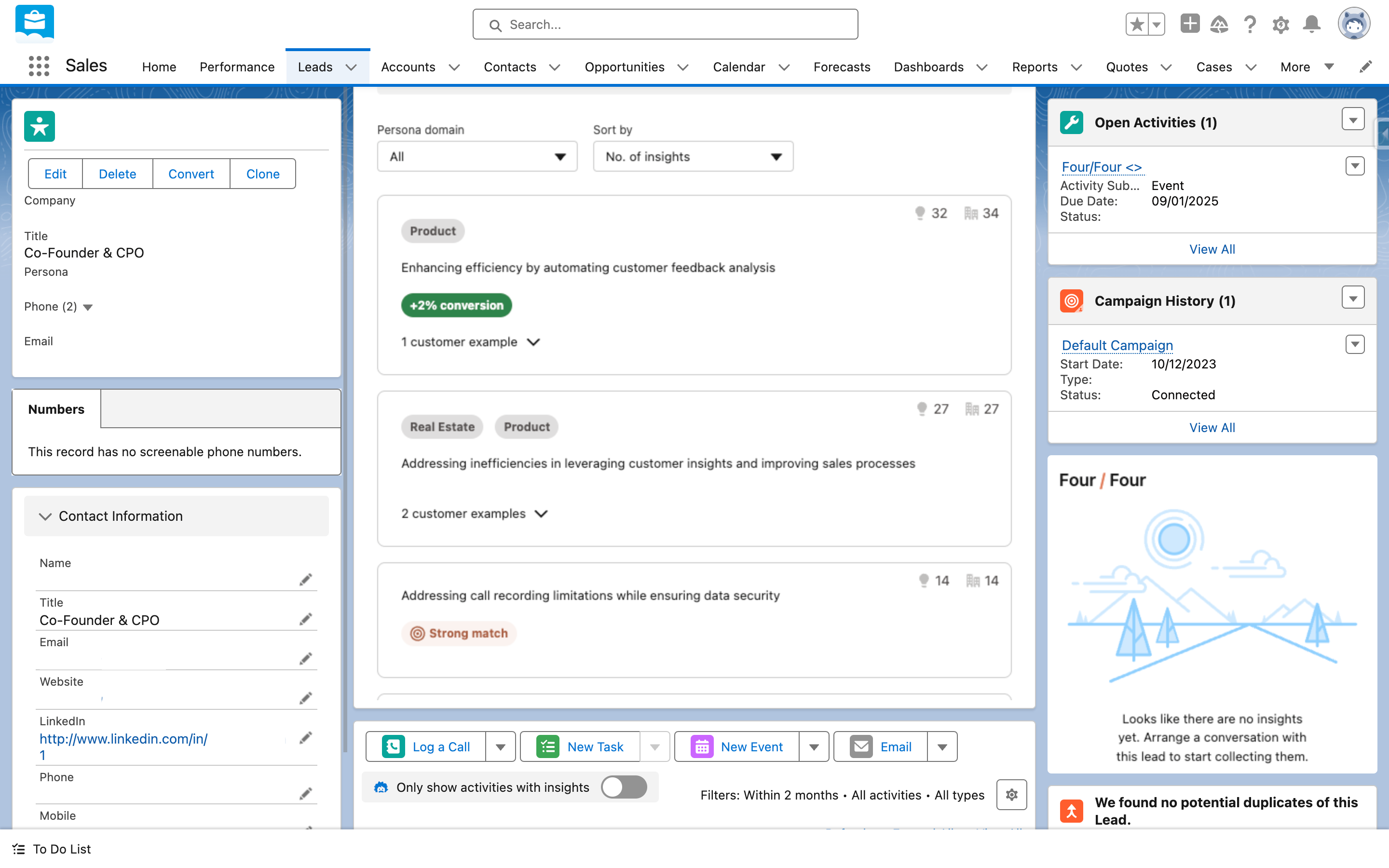 Imagine stepping into every conversation armed with the knowledge of what matters most to your contact, even if you're new to the business. Our Predictive Insights feature supports your approach by digging into your CRM data to uncover what truly resonates.